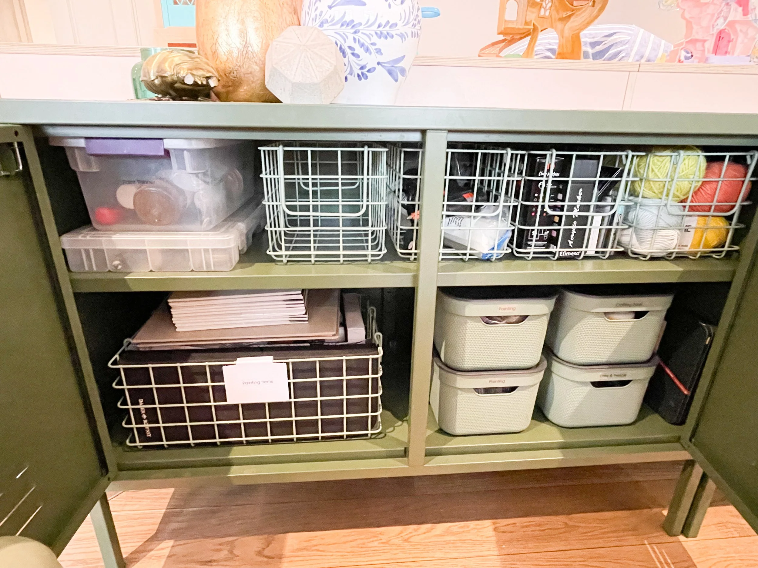 Baskets or boxes that match your home’s aesthetic